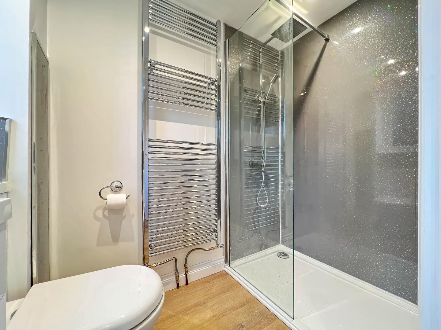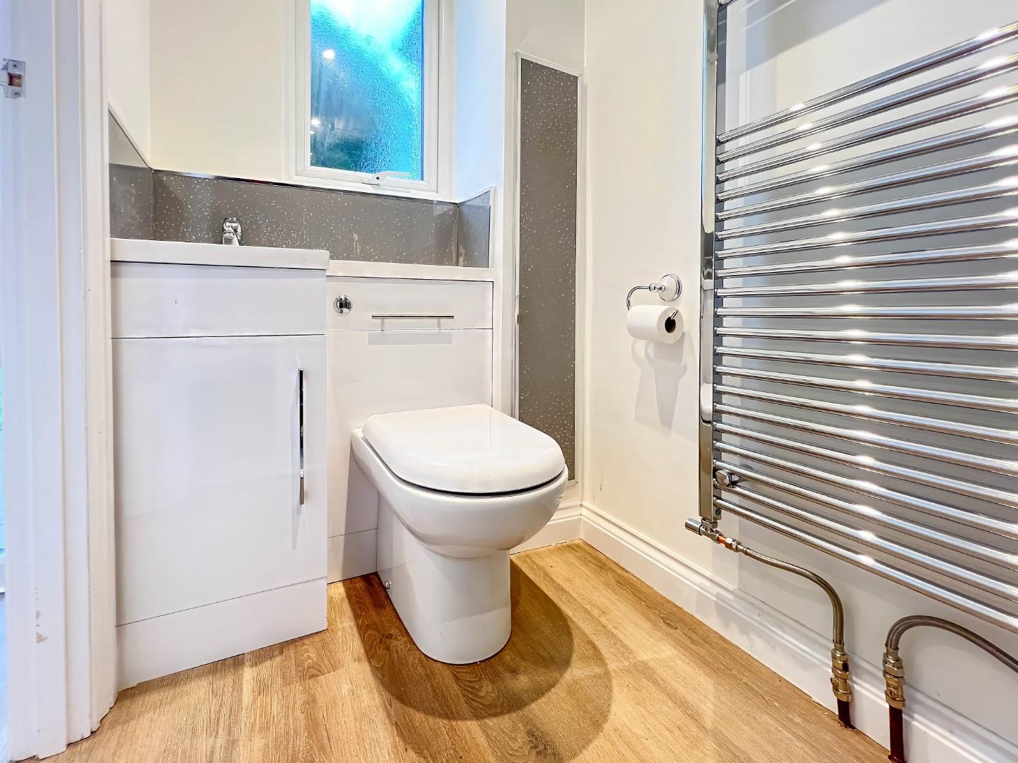 Rear lobby provides access into the rear garden, with utility area, with fitted storage units with overhead worktop surfaces, plumbing available for a washing machine, with door into the garage. Finishing off the ground floor accommodation is a newly installed shower room comprising, three piece suite, with a walk in shower with rain fall shower head with separate hand shower attachment, combination wash hand basin unit with WC, heated towel rail and a double glazed window to the rear aspect.