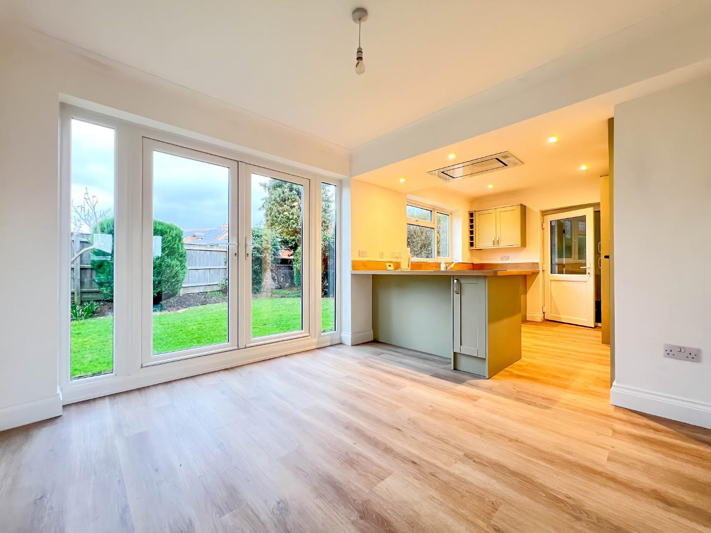 The property comprises of a light & airy spacious entrance hall with stairs featuring, glass side panels leading to the first floor with separate doors off the hall leading to, lounge & the kitchen areas. Spacious lounge to the front benefits from a large double glazed window to the front and laminate flooring from here, into a generous size dining & kitchen areas, with French double doors from the dining area leading into the rear garden.