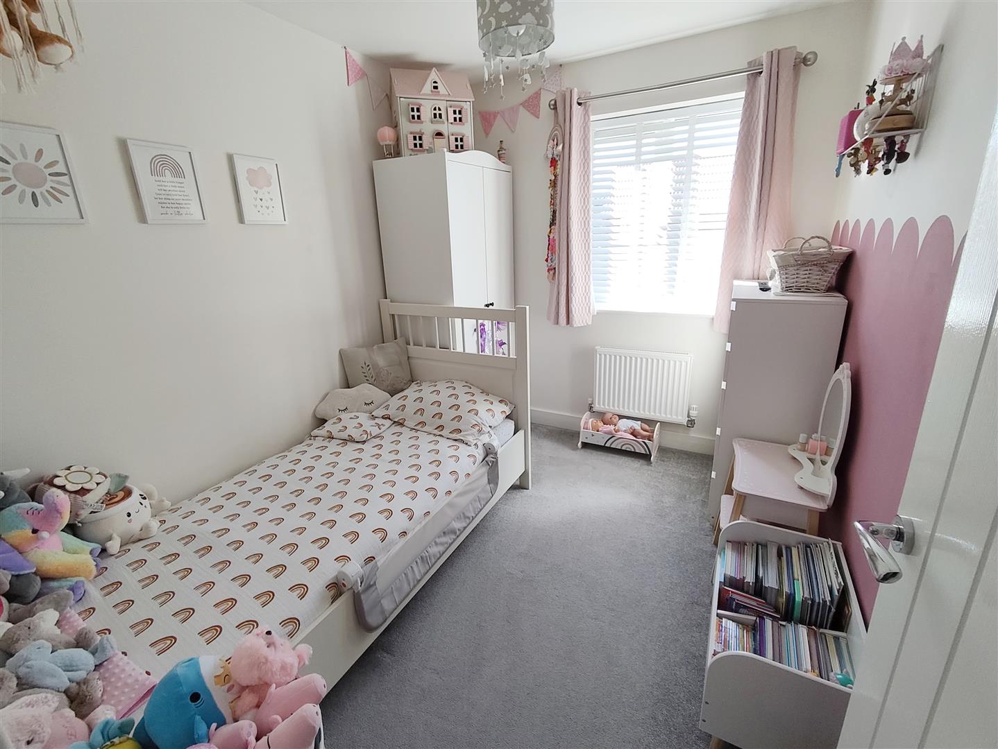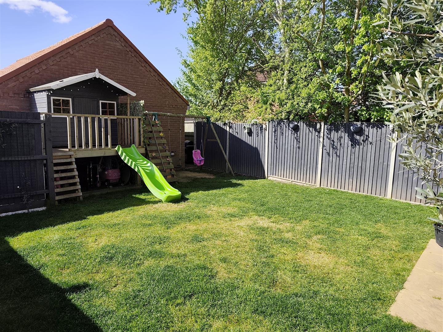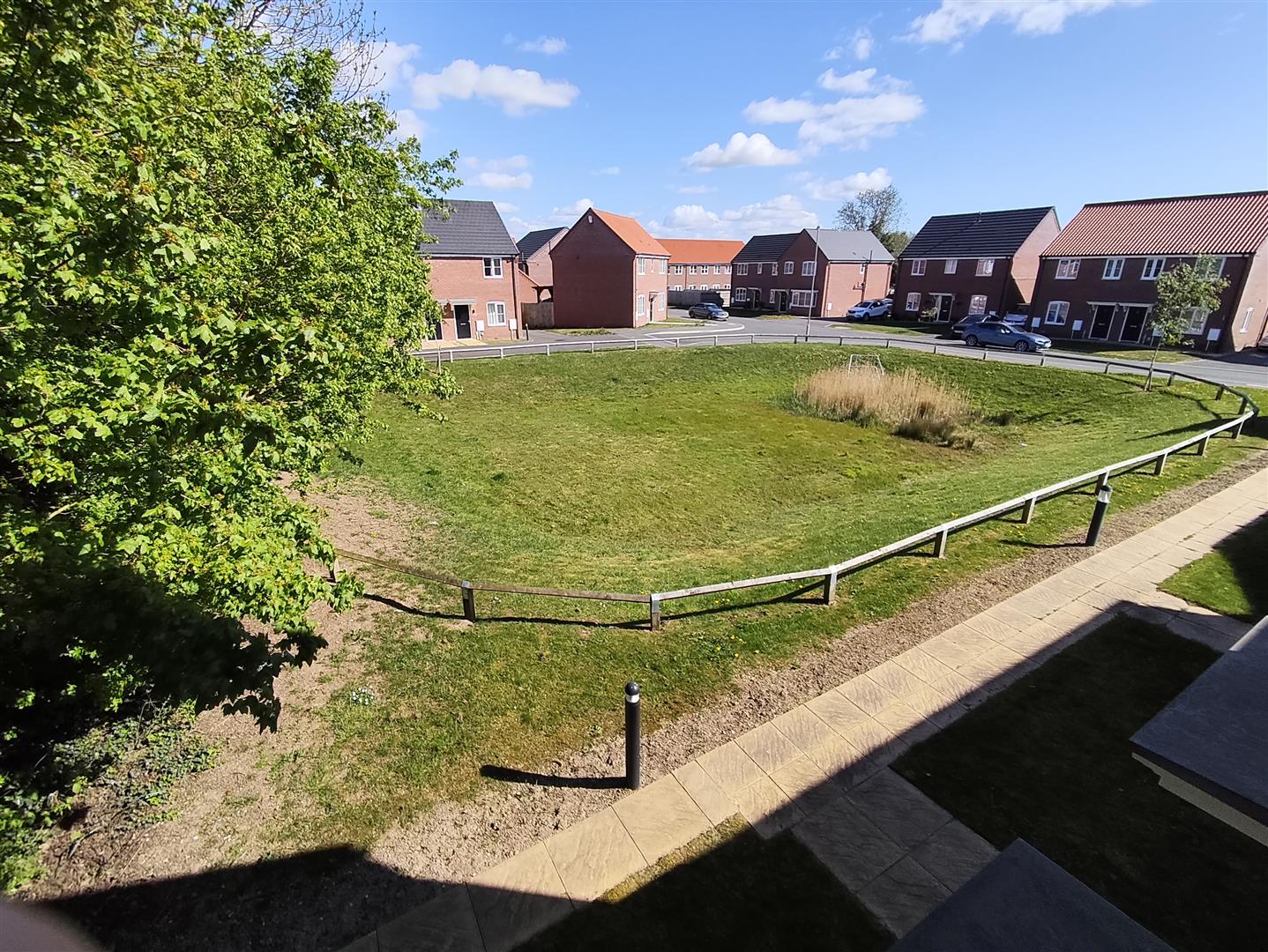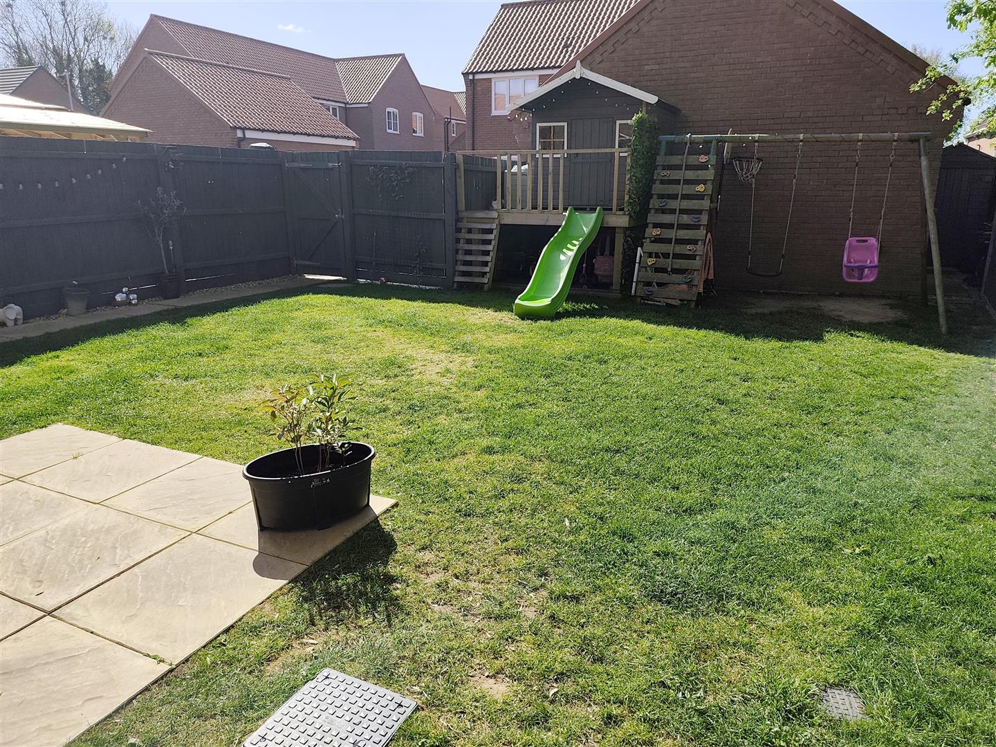 To the front of the property are views over an attractive balancing lake and pedestrian access to the front door. Gated side access leads to a sunny, enclosed garden ideal as a children play area. Laid to lawn there is a patio area and a second gated access to the two parking spaces and a single Garage.