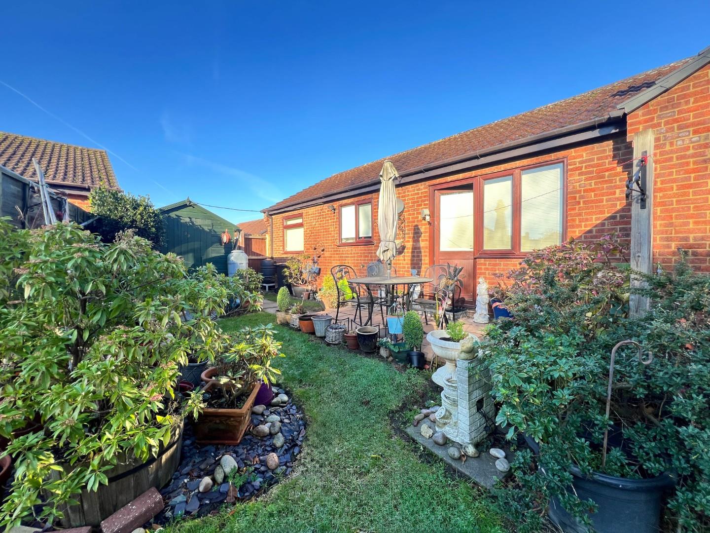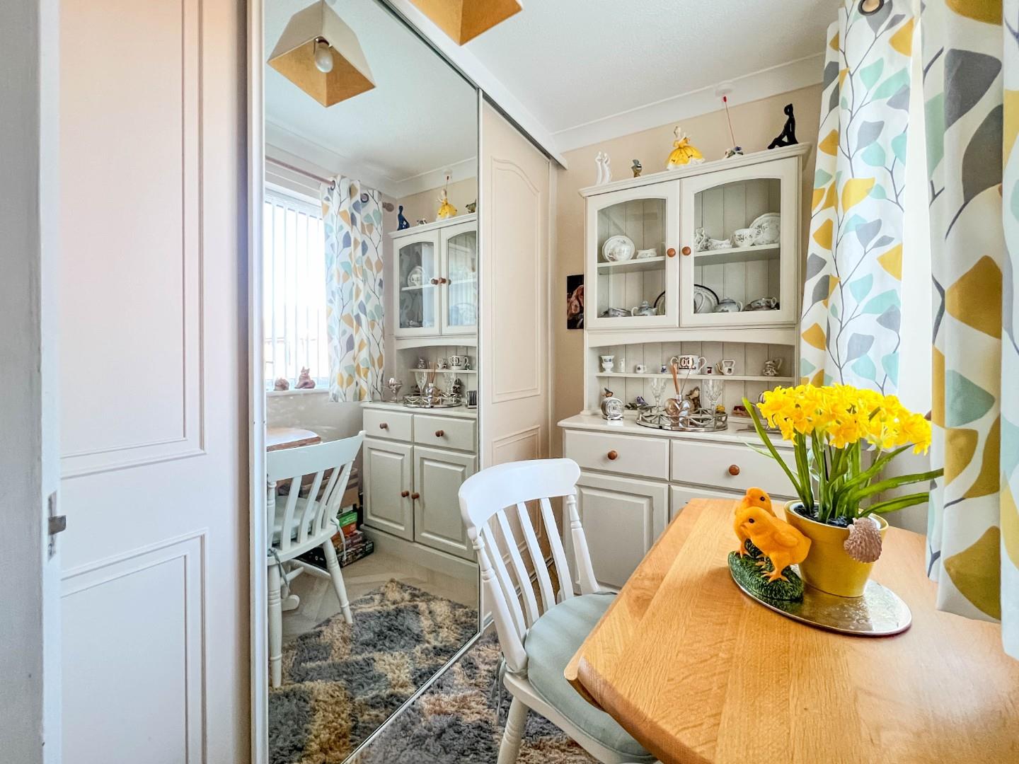 From the front, into an entrance porch with further door leading into the hallway with further doors off. Spacious lounge/diner benefits from double glazed dual aspect windows with door into the rear garden. Kitchen off the lounge, provides ample storage fitted with wall and floor level units with space for, fridge/freezer and cooker, with plumbing also available for washing machine, and a double glazed window to the rear. Main bedroom offers a fitted double wardrobe with window to the rear aspect. Further bedroom to the front of the property, which currently resides as a dining area, benefitting further from storage space with sliding doors. Lastly, finishing off the accommodation is a fitted three piece shower room comprising, walk in shower cubicle, wash hand basin with light fitment over with shaver point, WC, in addition there is a window to the front aspect, with heated towel radiator.