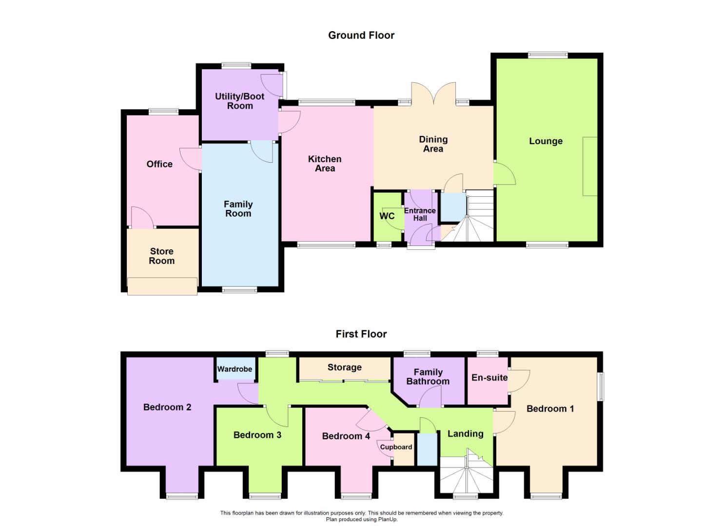 Ground Floor- entrance hall with re-fitted W/C, lounge, re-fitted kitchen area, dining area with feature island and double doors to the garden, re-fitted utility/boot room with door to the garden, family room with door through to the office and store room.