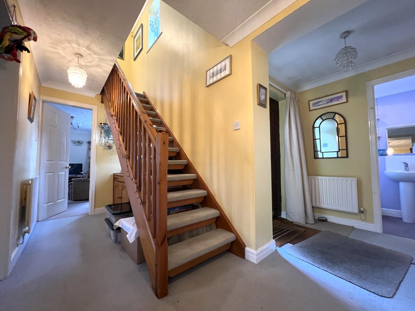 The driveway leads to the double garage as well as the front entrance and leads into, light & airy hallway entrance. From here, stairs lead to the first floor and benefits from an understairs storage space with various doors leading off the hallway.