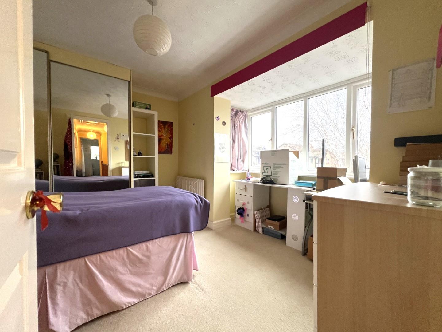 • Bedroom Two: Featuring further, fitted wardrobes with sliding mirrored doors with box bay window to the front aspect.