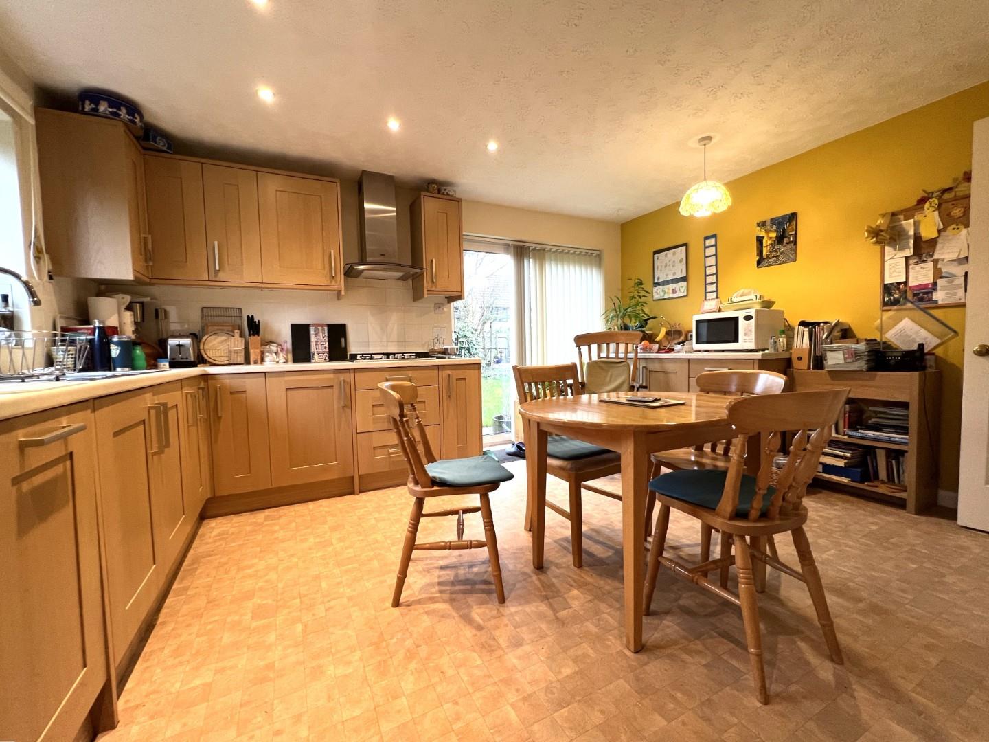 • Kitchen/Breakfast Room: Fitted with a range of wall and floor level units with ample worktop surfaces, with an inset single drainer, sink unit with mixer tap with storage under with views overlooking the rear garden, integrated dishwasher and oven with fitted gas hob with extractor hood over.