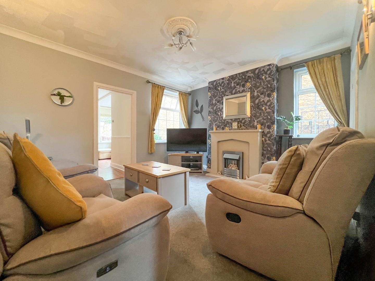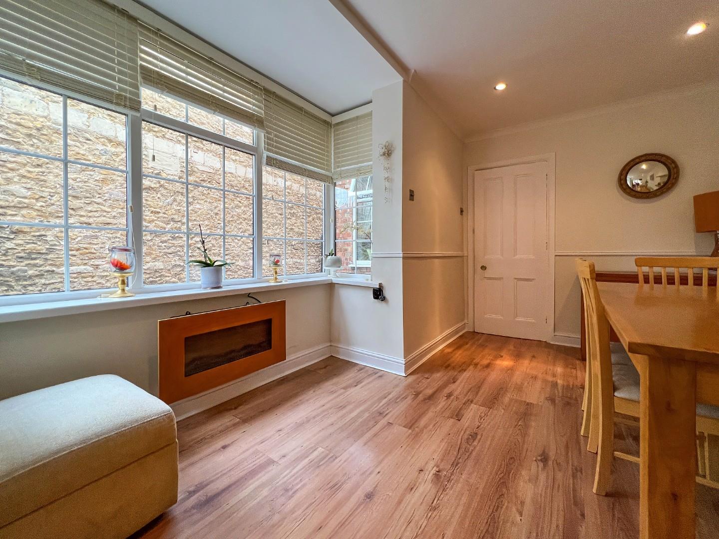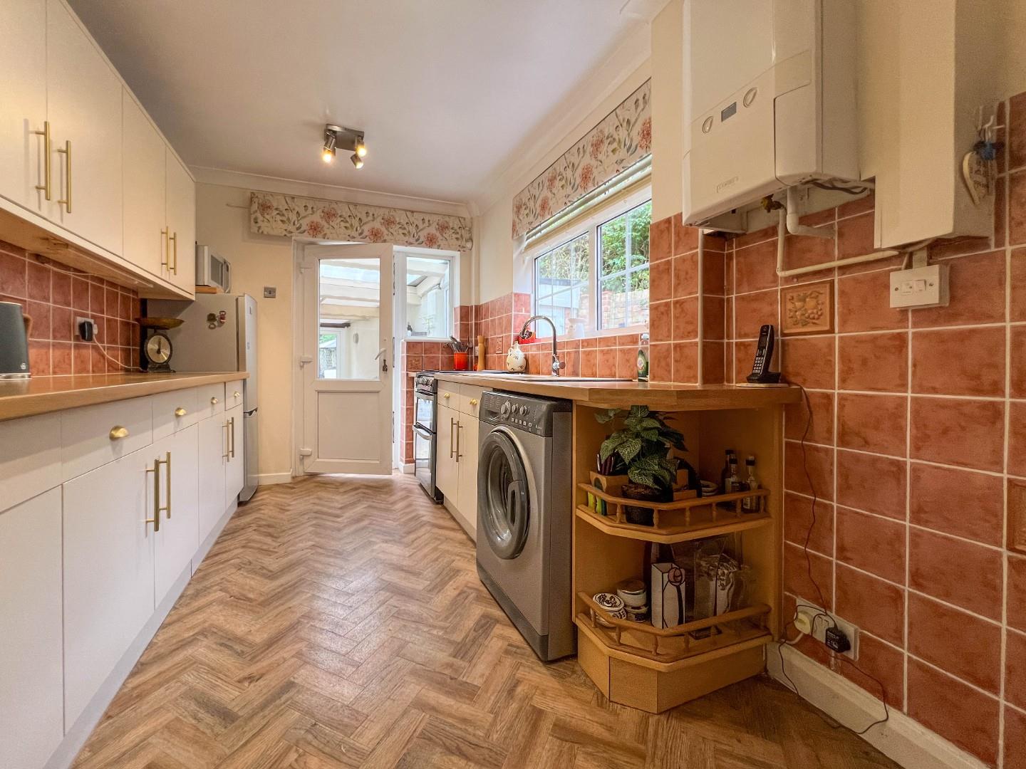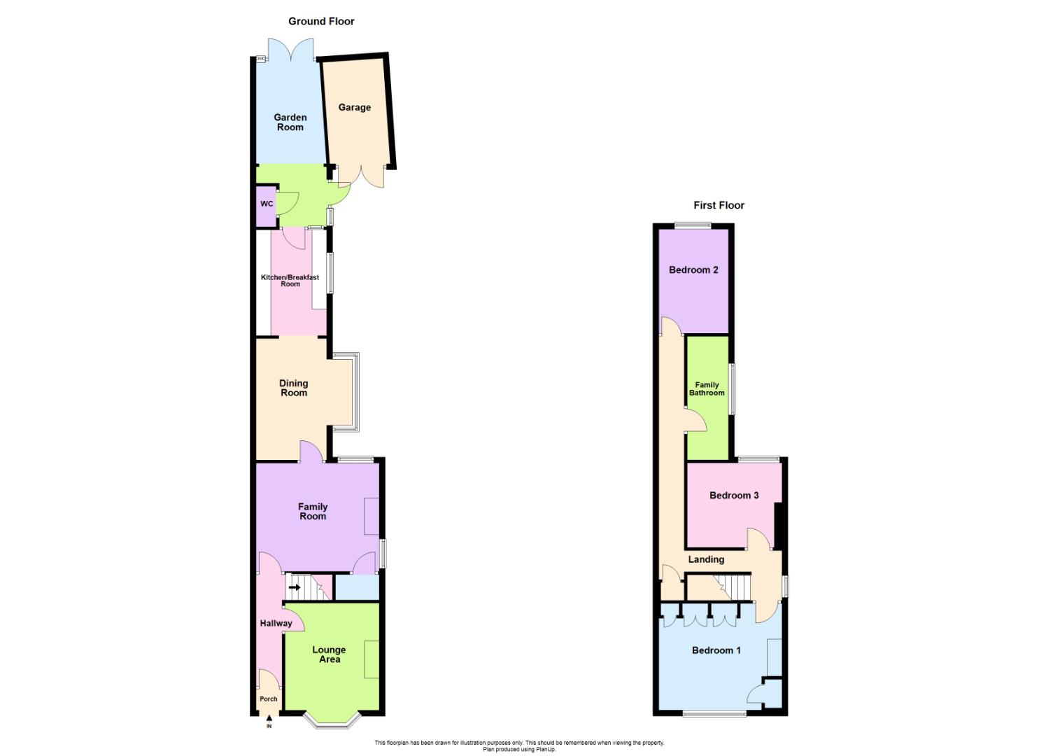 From the front, porch leads into the hallway with parquet style flooring with stairs leading to the first floor & landing, from here, separate doors lead to both the lounge & family rooms. Lounge to the front of the property offers, double glazed bay window to the front aspect and a cast iron ornate feature surround fireplace with tiled hearth. The family room off the hall, provides ample living space benefitting from fireplace surround inset fire, dual aspect windows to side and rear and an under stairs storage cupboard, from here, door leads into a good size dining room area, featuring a large, double glazed box bay window to the side aspect with a wall mounted electric heater, laminate flooring and ceiling mounted spotlights, opening into the kitchen space, benefits from a range of wall and floor level fitted storage units with matching breakfast bar, with ample worktop surfaces with tiled splashbacks, and an inset 1 & 1/2 bowl single drainer sink unit with a swan neck style mixer tap, with storage under, spaces available for washing machine and a fridge freezer, window to the side with door leading through to the garden room. Garden room provides ample space housing a wall mounted panelled heater, with door to the side aspect leading to the driveway with further double doors leading out into the rear garden, lastly, further door leading into a two piece cloakroom.