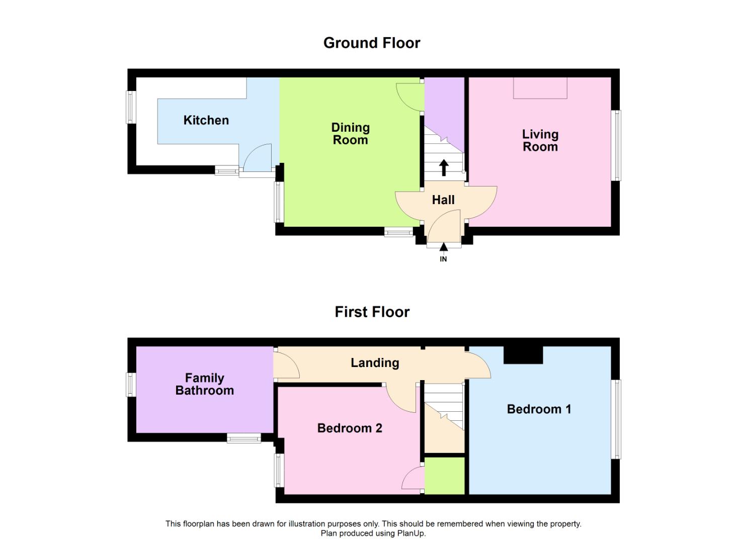 Directly entering the property, you’ll find the stairs leading to the first floor. To the right of the entrance hall you have an ample sized living room with window to the front of the property. To the left of the entrance hall you’ll find a good sized dining room with storage cupboard underneath the stairs. On from the dining room you have a fitted kitchen with door access to the rear garden space. Upstairs, off the landing you’ll find the two bedrooms. The first bedroom is of good size, with window facing the front of the property. Bedroom two, double size with window facing the garden. At the end of the landing you have a good sized, newly fitted, modern, four piece suite family bathroom.