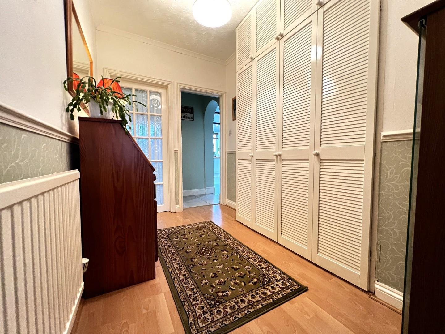 Inner Hallway: Laminate flooring with ample built in, storage cupboard units.