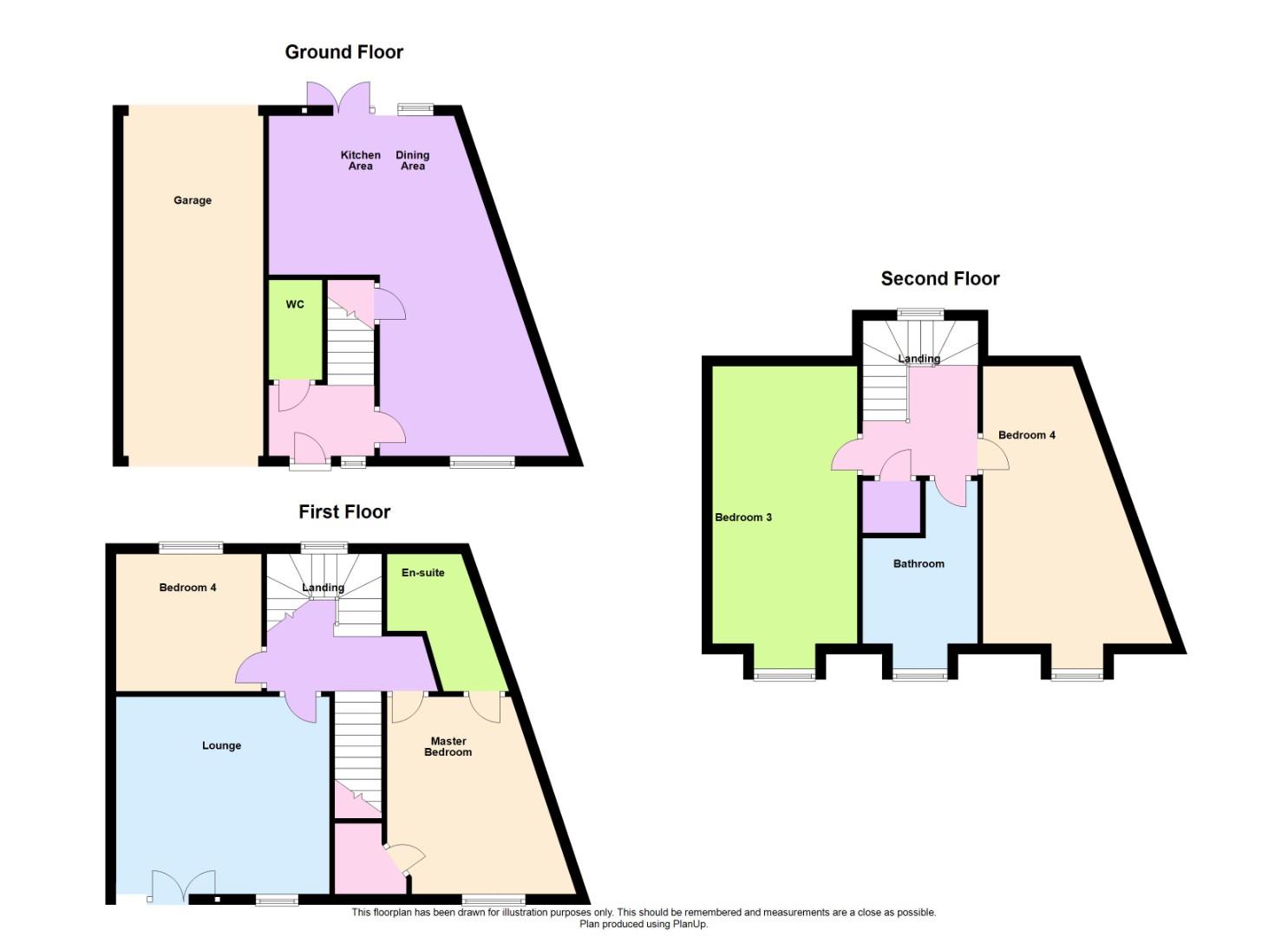 To the first floor is the lounge with Juliette balcony and laminate flooring, two further bedrooms. The master bedroom benefits from a walk in wardrobe and three piece en-suite shower room.