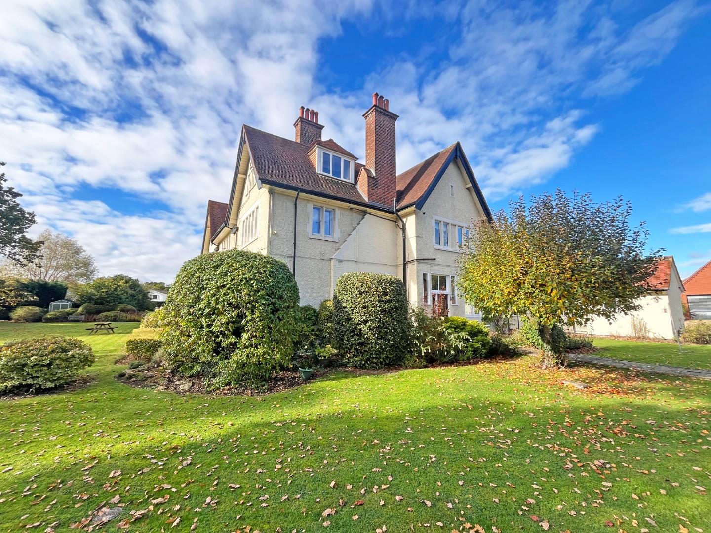 Outside the property is approached by a long sweeping driveway, situated on a large plot offering well maintained garden areas. Mainly laid to grass and mature plants, shrubs and trees.