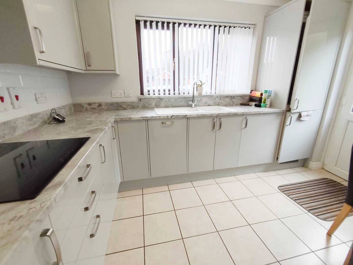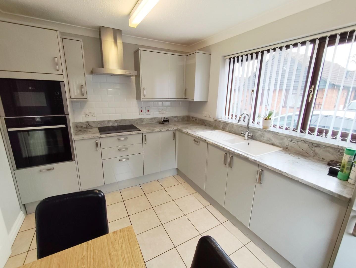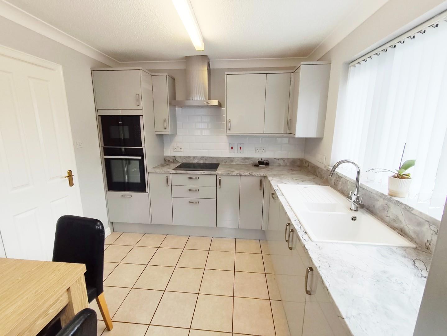 Re-fitted with an attractive range of base and eye level kitchen units, fitted microwave, electric oven with hob and extractor fan above, integrated fridge and freezer, dishwasher, ceramic tiled flooring, door to the rear Garden.