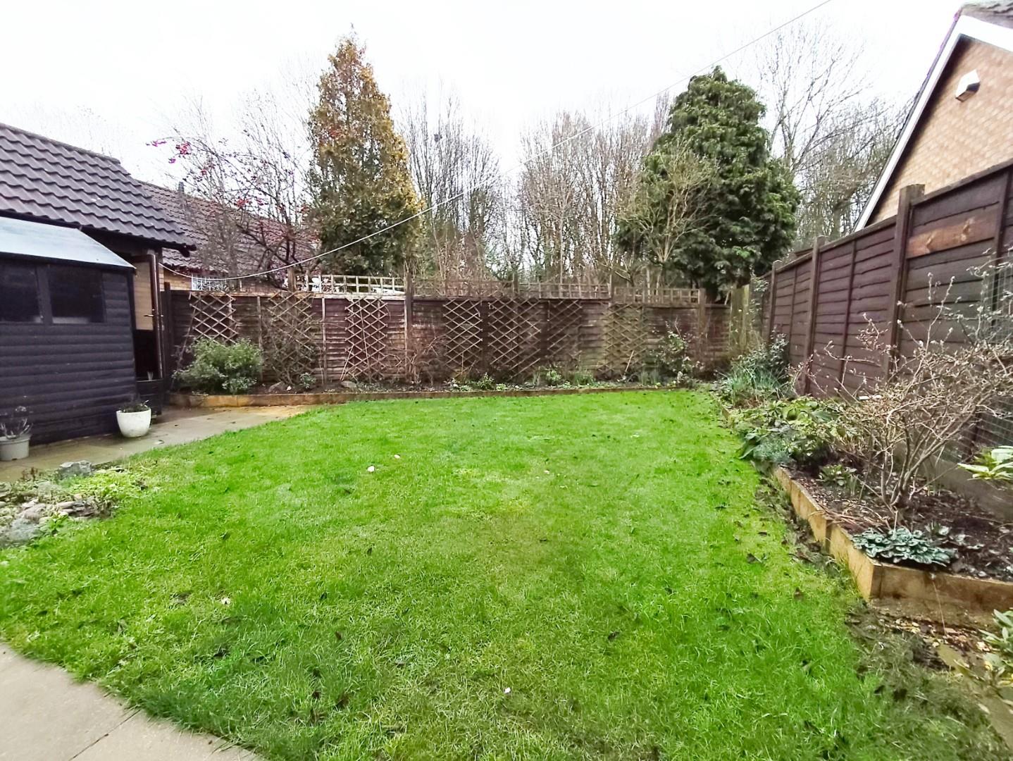 To the front and side of the property is an open plan lawn and block paved driveway to a single Garage with power, light and a roller Garage door. Gated side access leads to an enclosed garden mainly laid to lawn with a good size patio area and storage shed.