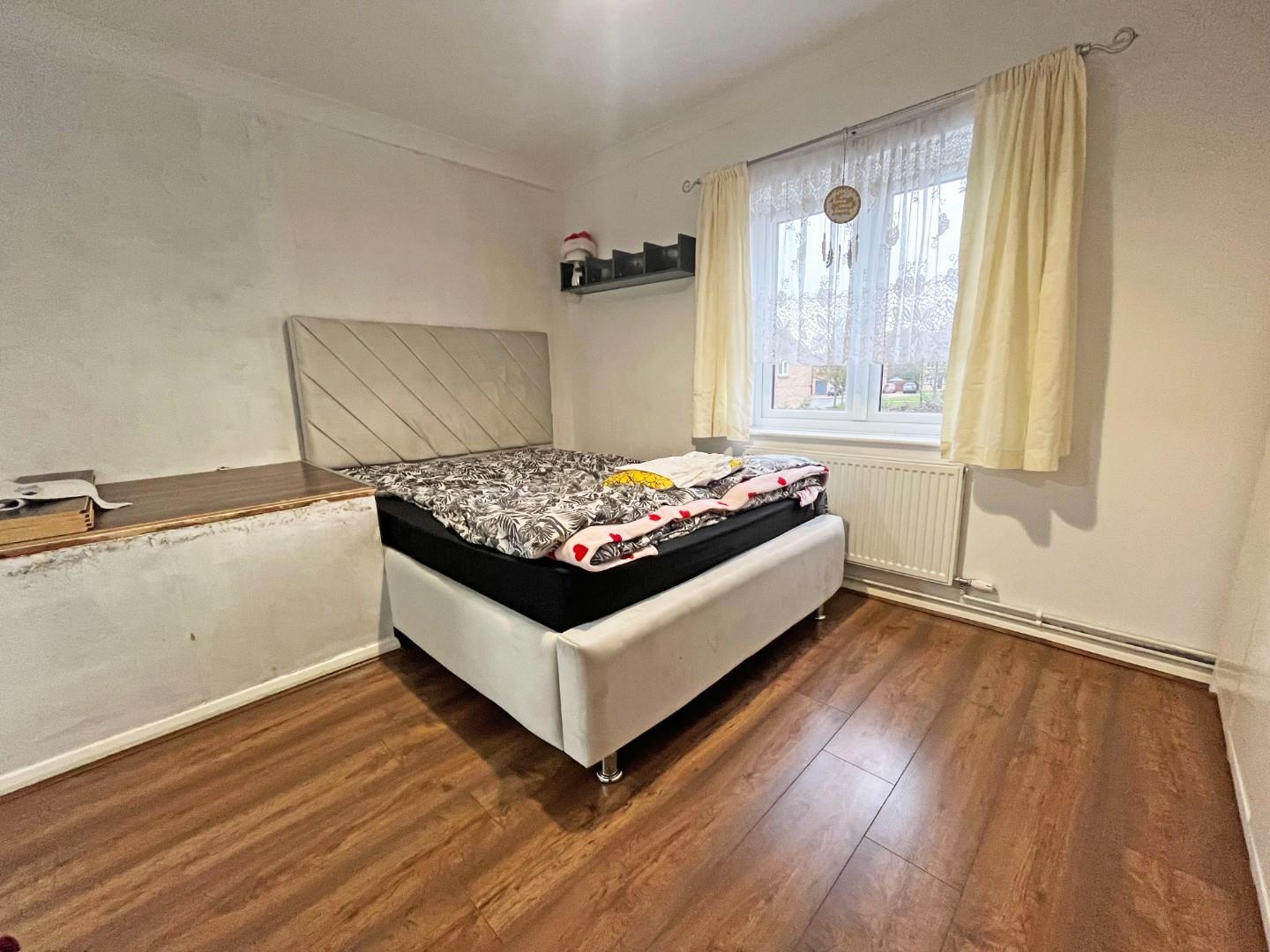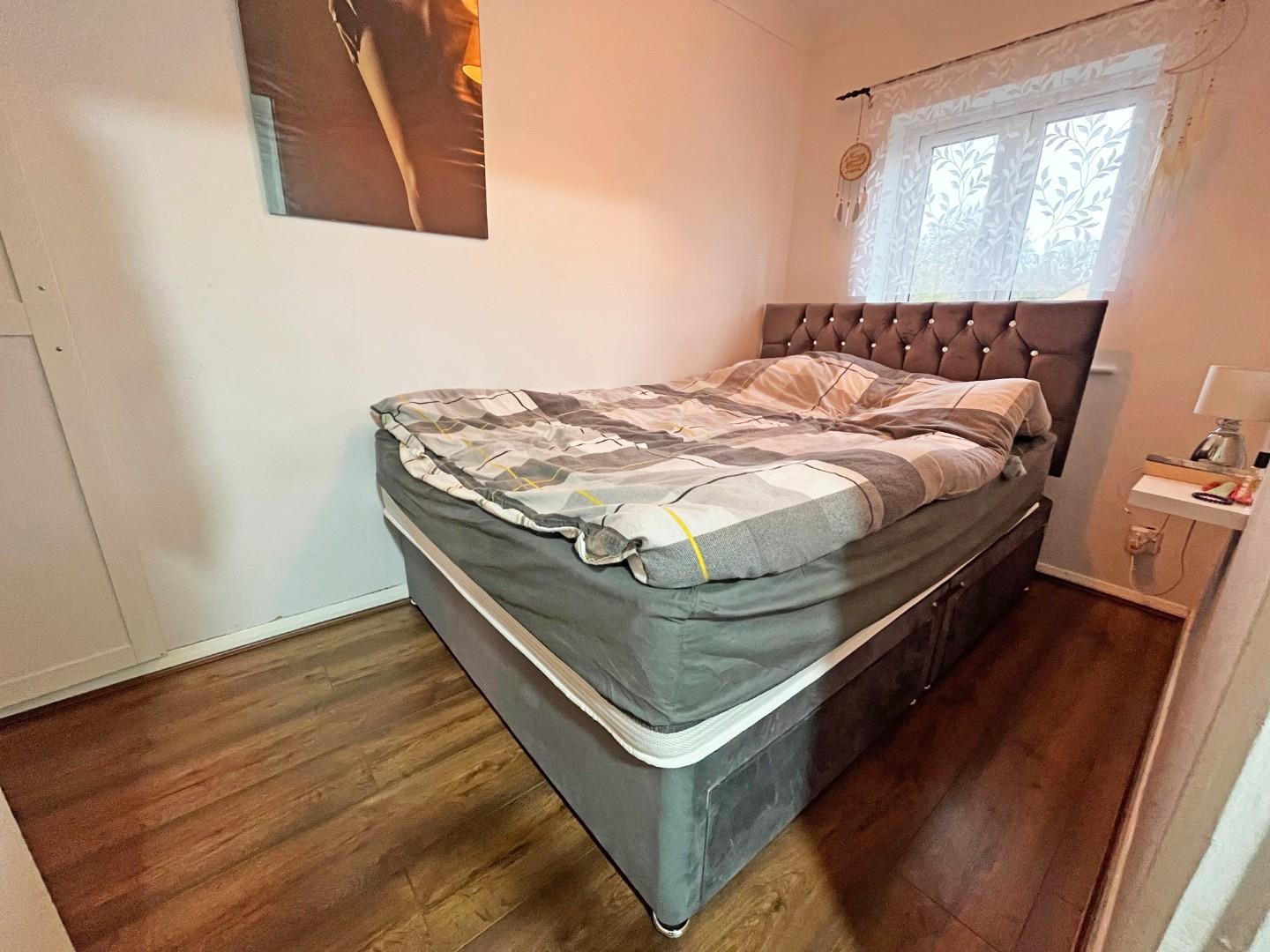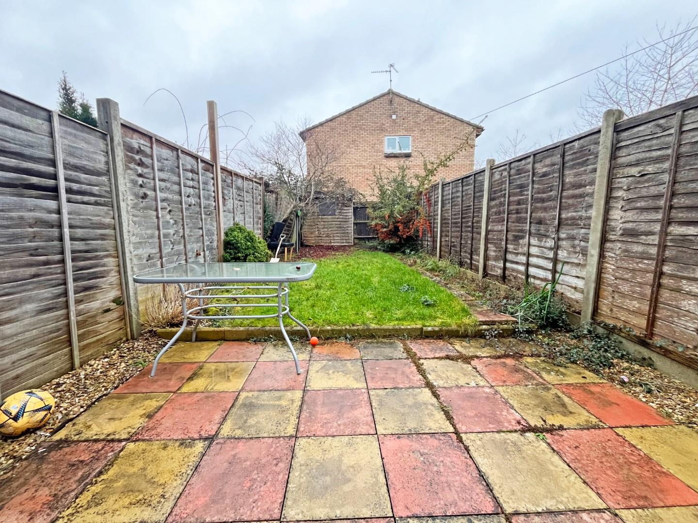 Outside- parking to the front of the property, frontage laid to lawn with a mix of bushes and plants. To the rear of the property, an enclosed garden laid to patio and lawn.