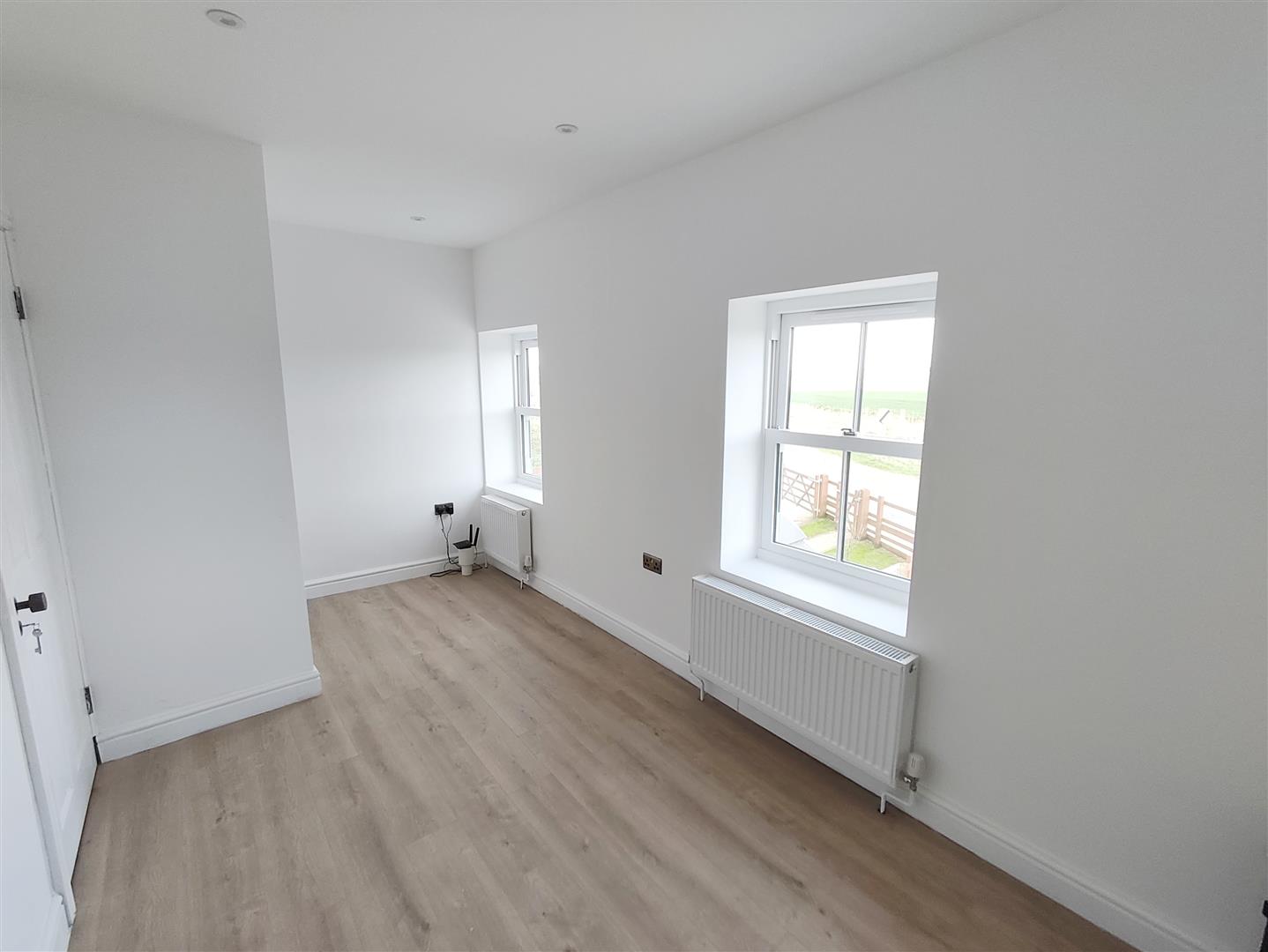 The versatile ground floor bedroom benefits from an en-suite bathroom and built-in wardrobe space, making it ideal for a variety of uses including a guest room, private lounge, or home office. It also enjoys open views across the front farmland. Upstairs, both bedrooms offer stunning panoramic views—one overlooking the rear garden and extensive farmland beyond, and the other capturing wide views of the surrounding fields and country roads. Each room also includes built-in areas suitable for a home office or additional storage.