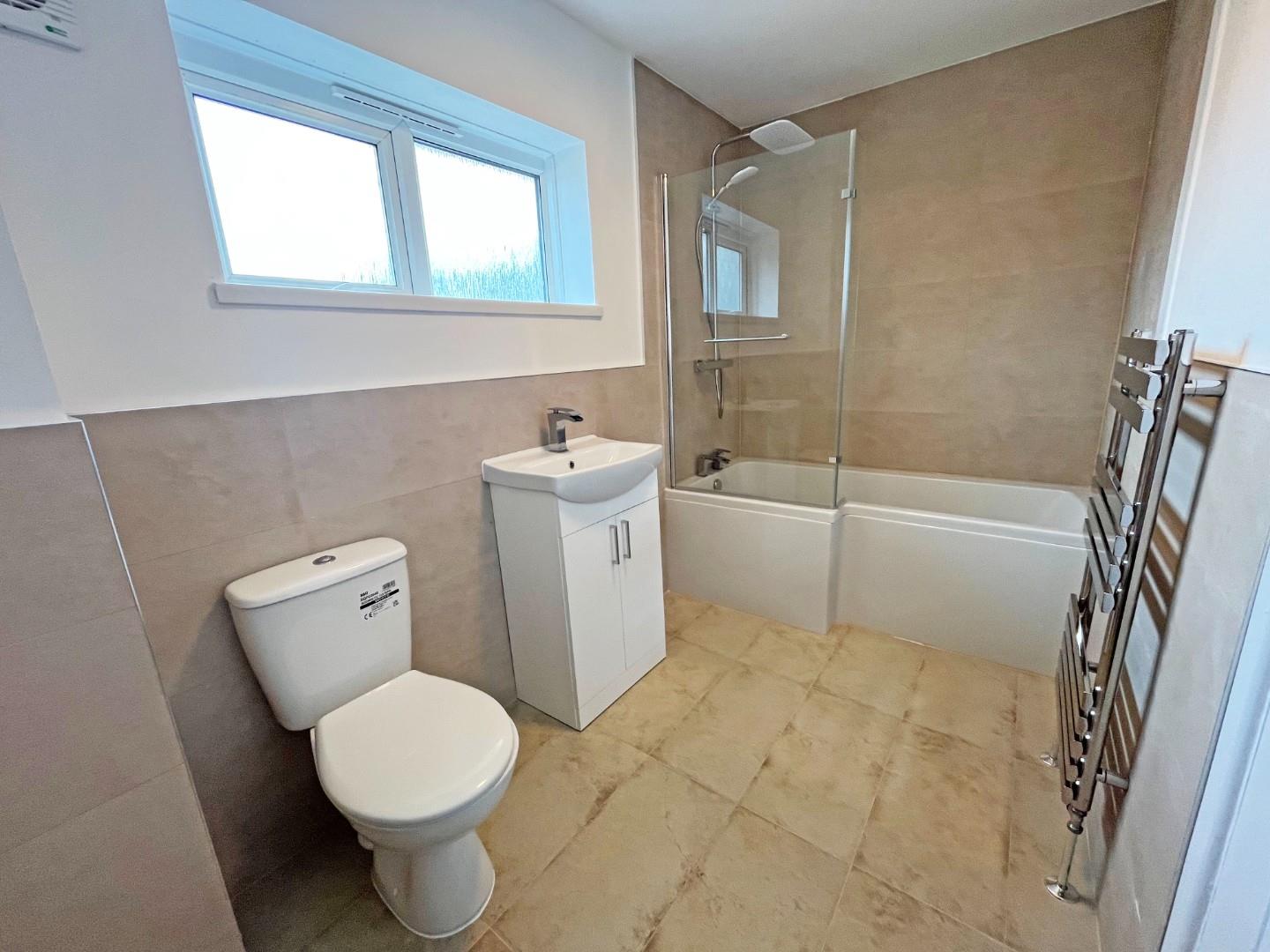 Stylish, fully tiled family bathroom with contemporary fixtures