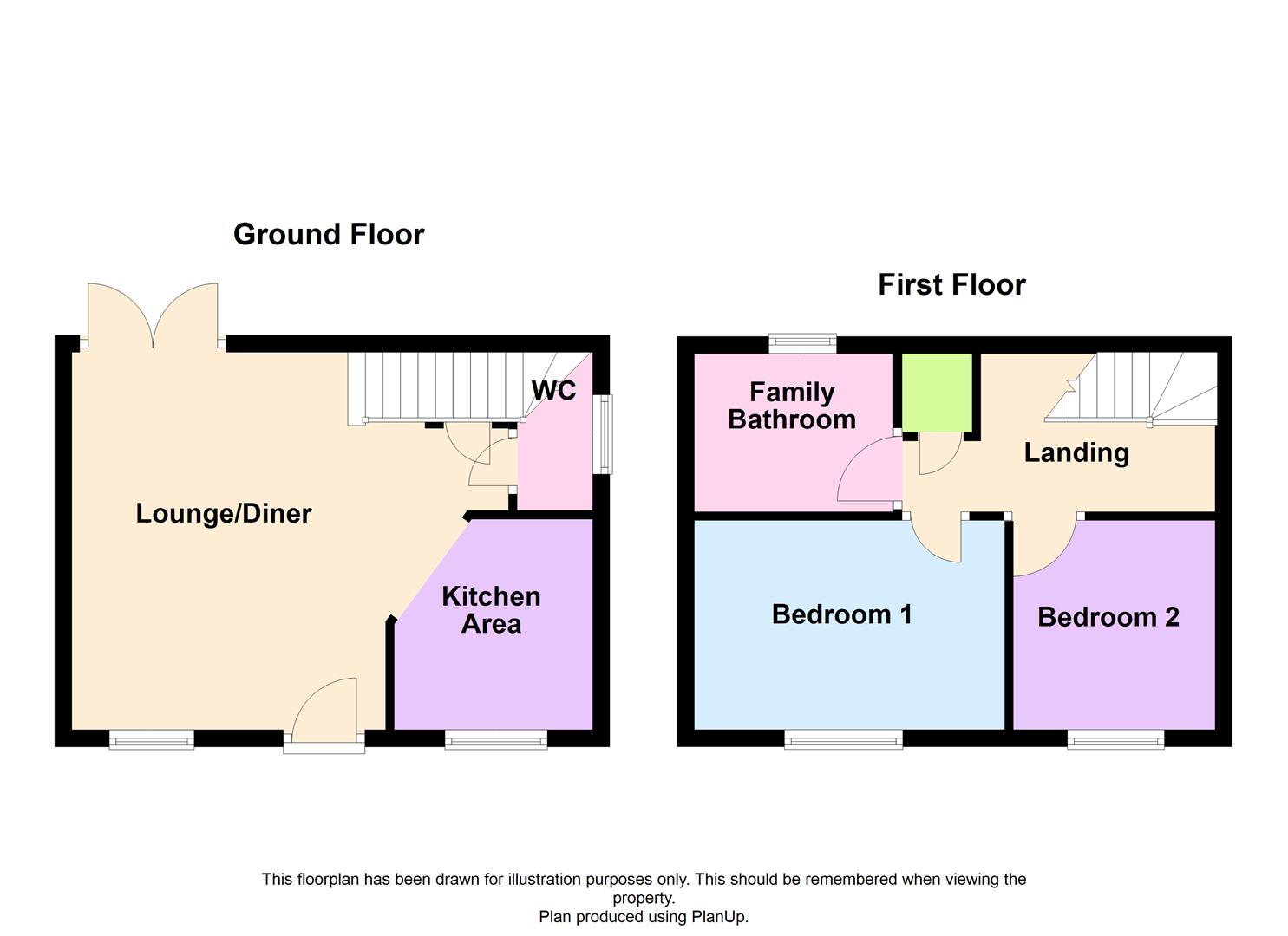 The accommodation comprises; good size Lounge Diner, fitted Kitchenette and Cloakroom W.C. The Landing leads to two Bedrooms and Family Bathroom.