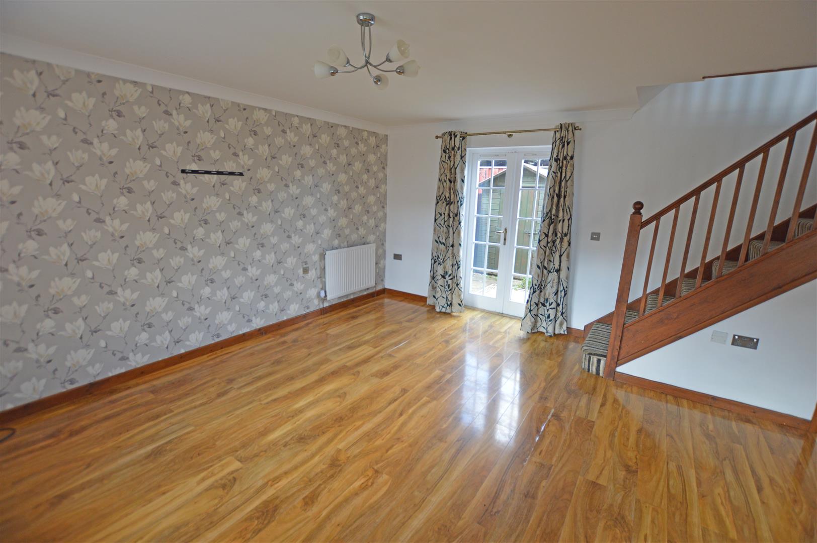 French doors to rear garden, stairs to the first floor Landing with a storage cupboard below, opening to