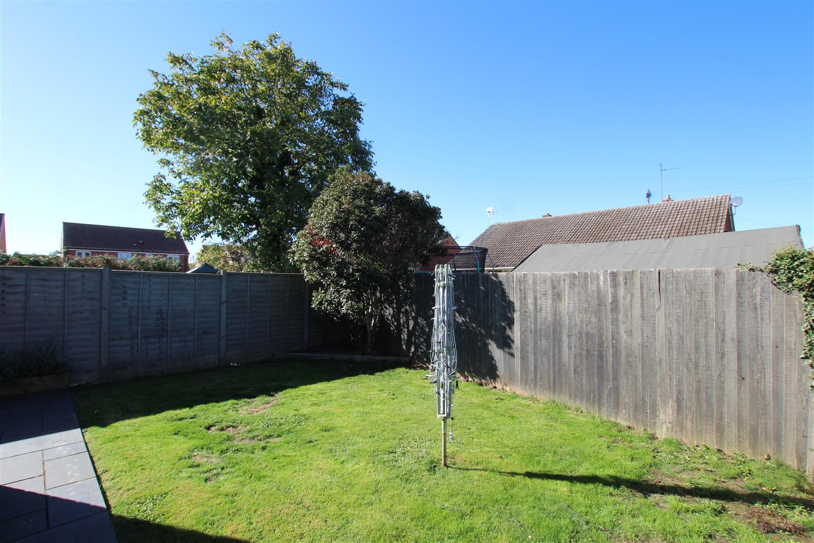 To the front of the property is a gravel hardstanding garden and driveway leading to a single Garage which has an up & over door with power and light connected. The enclosed rear garden is laid to lawn, with an attractive slabbed patio and raised borders. There is a built in storage shed.