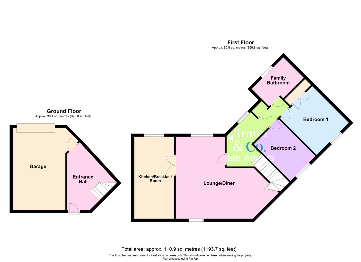First Floor- landing, lounge/diner, kitchen/breakfast room, bedroom one with fitted furniture, bedroom two with fitted wardrobes and family bathroom.