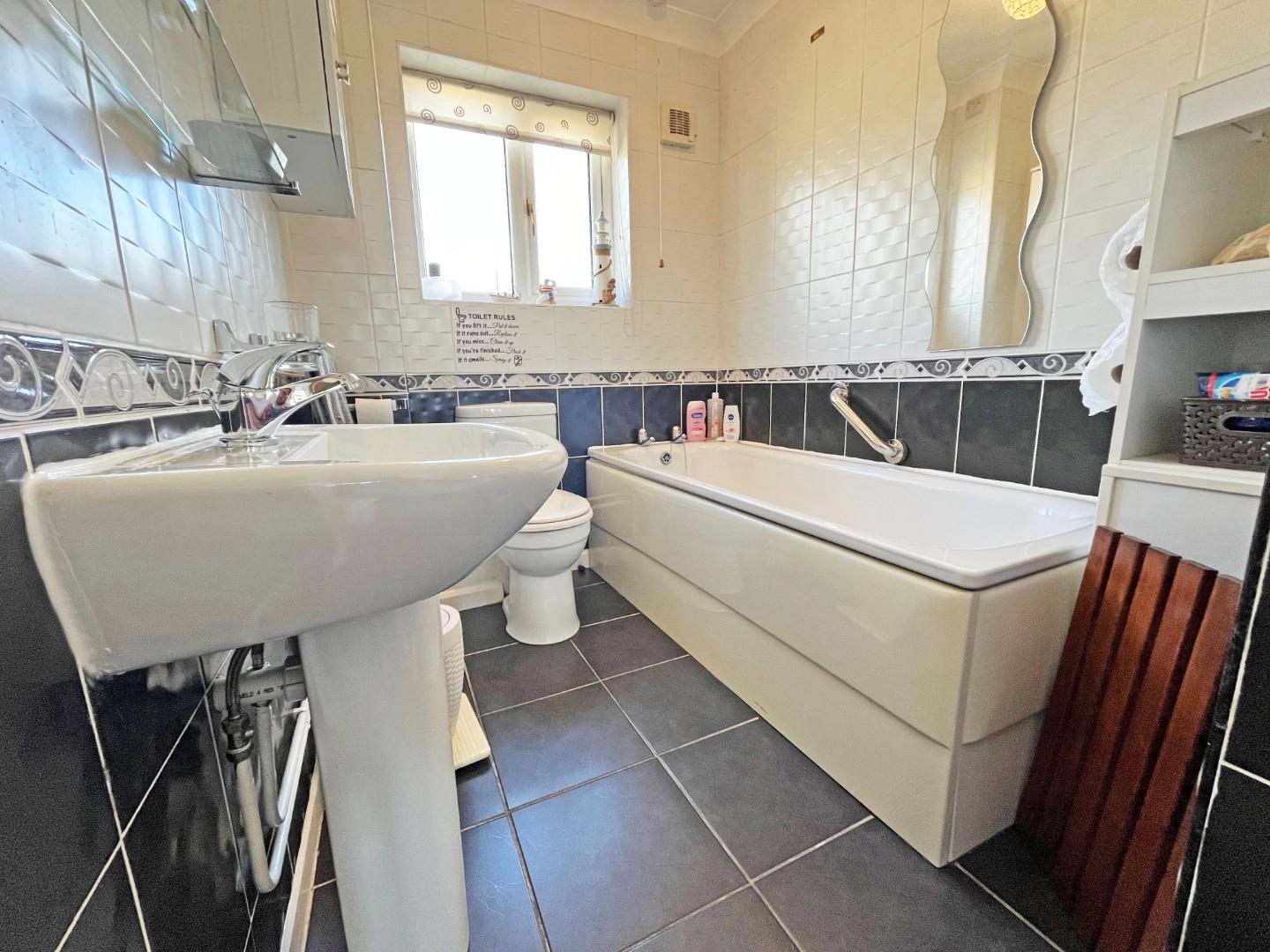 Outside- driveway to the rear providing off-road parking leading to detached single garage. Rear access to the enclosed garden. Mainly laid to grass/patio with mature shrubs and bushes.